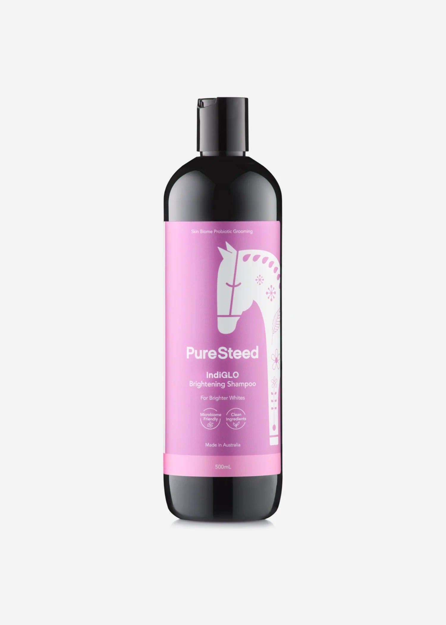 NEW... IndiGLO Brightening Shampoo is the ultimate solution for horse owners looking for a superior solution to brighten and whiten their horses' coats, manes and tails. This revolutionary purple shampoo not only brightens white, grey and light-coloured coats, but also works on all coat colours achieving a radiant shine and effervescent colour.